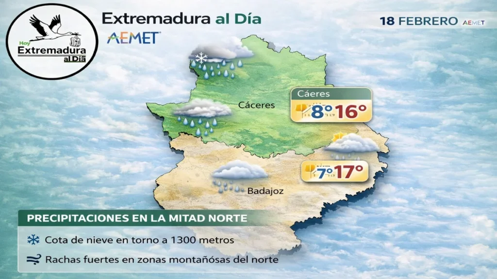 Bienvenidos a una nueva y trascendental jornada informativa en Noticias Extremadura al Día – Hoy. En nuestra redacción, mantenemos el firme compromiso de ofrecer un periodismo libre, cercano y diferente. Por esta razón, te contamos las noticias de nuestra tierra sin filtros, sin suscripciones y sin coste alguno, garantizando siempre un enfoque humano, ágil y honesto. Este miércoles 18 de febrero de 2026, la actualidad regional despierta marcada por el bloqueo en las negociaciones de gobierno, una huelga médica que afecta a miles de pacientes y la llegada de la decimosexta borrasca de la temporada. Porque Extremadura merece un periodismo independiente, claro y directo, hoy desgranamos cada detalle de lo que ocurre en nuestra comunidad.