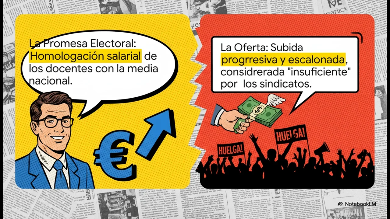 No obstante, esta gestión se ha visto minada por la inestabilidad política derivada del pacto inicial con Vox y por los conflictos sociales no resueltos, siendo la homologación salarial docente el ejemplo más visible de promesas que se han quedado en el camino o se han aplazado.